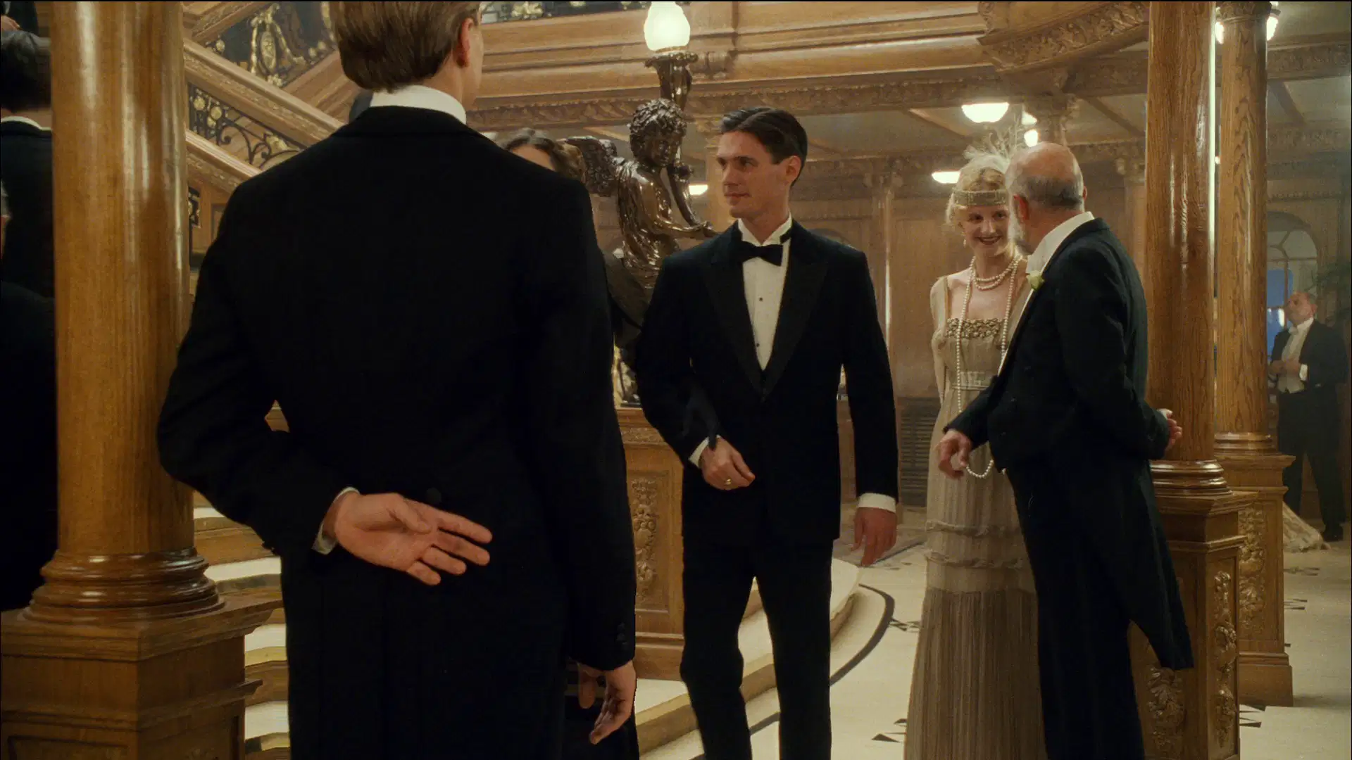 罗丝厌倦了上流社会虚伪的生活,不愿嫁给卡尔,打算投海自尽,被杰克救起。很快,美丽活泼的罗丝与英俊开朗的杰克相爱,杰克带罗丝参加下等舱的舞会、为她画像,二人的感情逐渐升温。