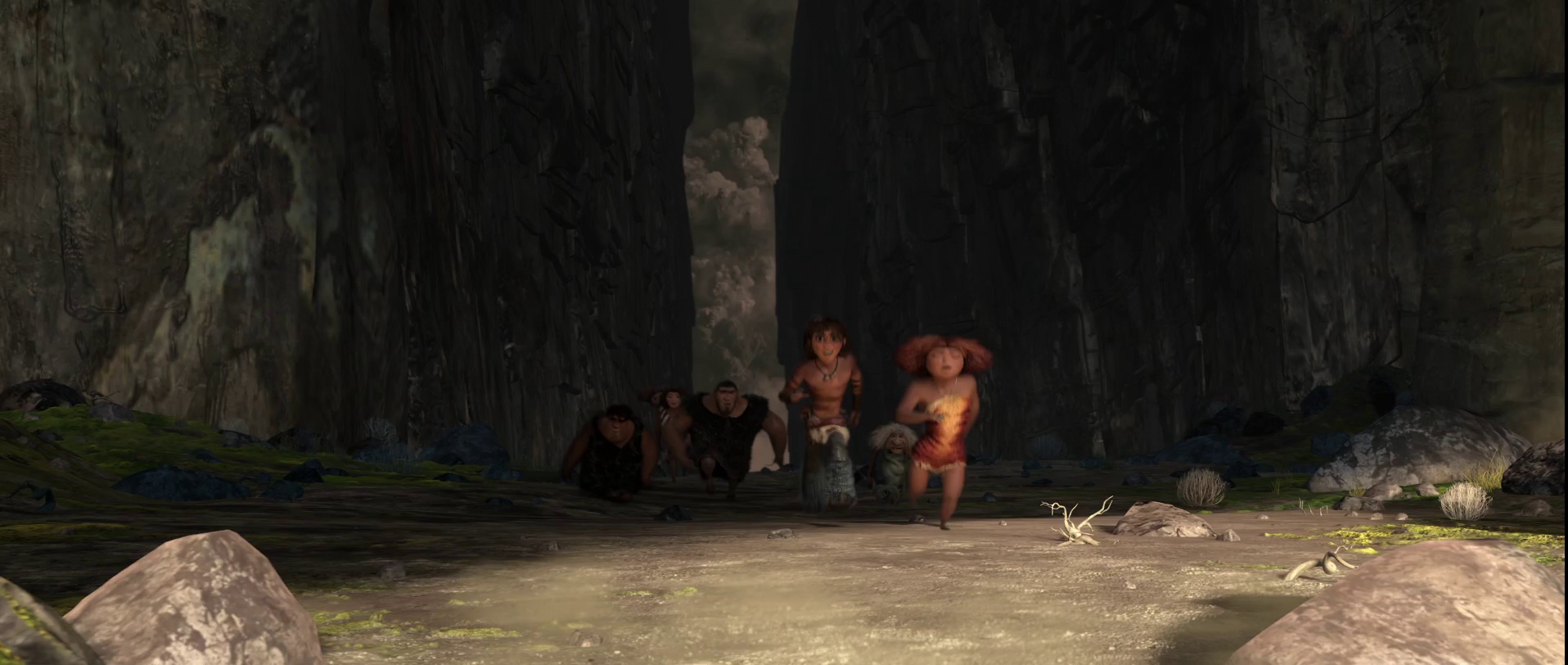 原始人咕噜一家六口在老爸Grug(尼古拉斯·凯奇 Nicolas Cage 配音)的庇护下生活。每天抢夺鸵鸟蛋为食,躲避野兽的追击,每晚听老爸叙述同一个故事,在山洞里过着一成不变的生活。大女儿Eep(艾玛·斯通 Emma Stone 配音)是一个和老爸性格截然相反的充满好奇心的女孩,她不满足一辈子留在这个小山洞里,一心想要追逐山洞外面的新奇世界。
