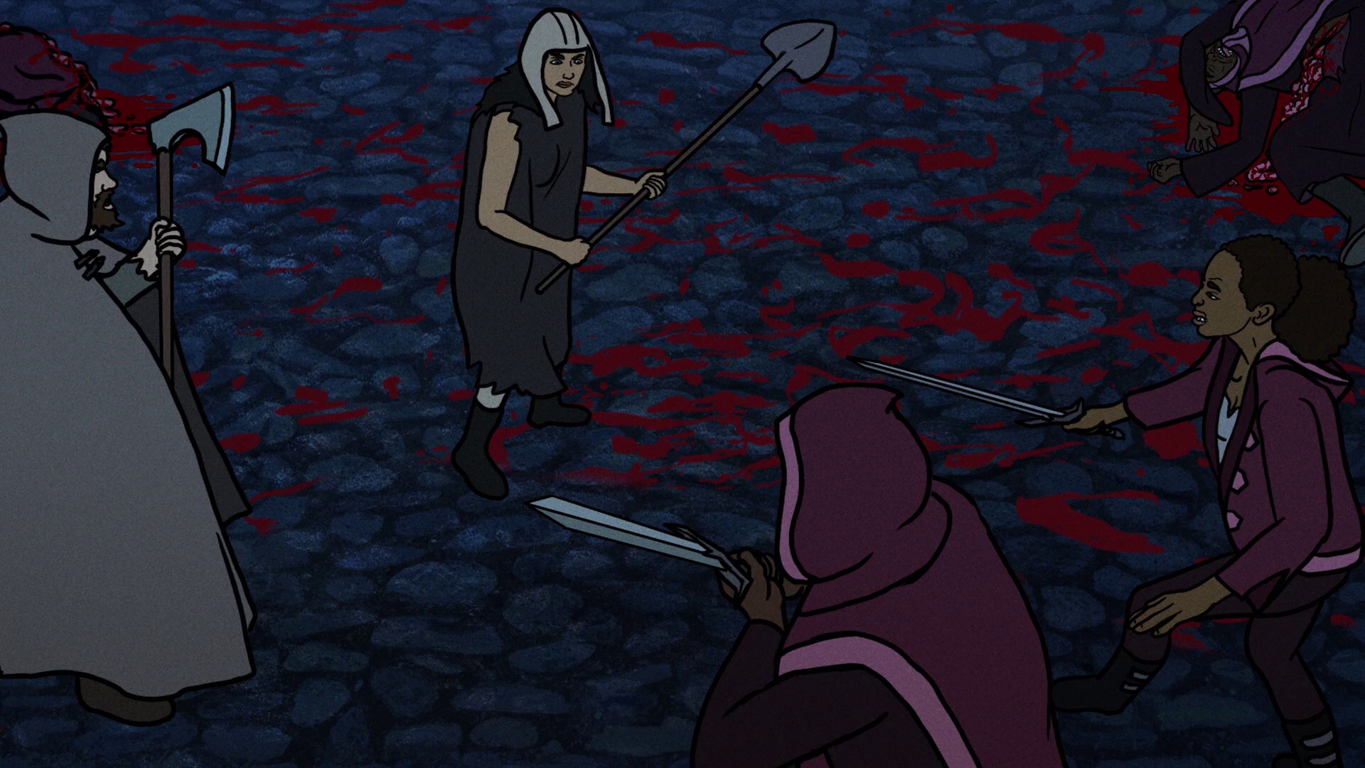 以魔法之地为背景,邪恶之人为了获得权力,从巫女身上夺取黑魔法,并攻占各城镇,给人类带来了漫长的苦难。来自不同时代及文化的英雄们为了讨伐邪恶力量,联手展开一段血腥暴力的生存之战。 血溅横飞的画面风格,将本片的暴力美学展现到极致,而故事的惊人发展,也让整部电影的张力爆发到极点,宛如动画版〈权力游戏〉令人热血沸腾,是动画少见史诗格局的奇幻艺术杰作。