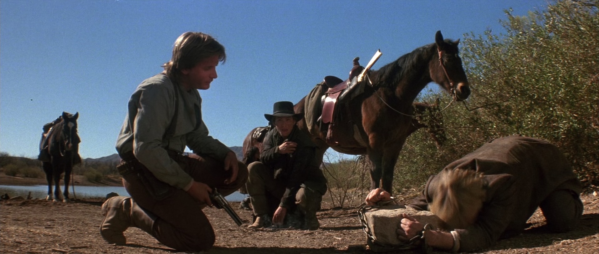 比利(基弗·萨瑟兰 Kiefer Sutherland 饰),一个以枪法精湛而闻名的枪手,他追求成为西部传奇人物的目标,带领一群忠诚的追随者,劫富济贫,与警察展开了一场持久的对抗。比利具备出色的智慧和非凡的勇气,因此他赢得了伙伴们的坚定信任。然而,生活在马背上,面对弹雨,生活并不容易。他们经常受到雇佣的杀手和警察的追捕,不断陷入生死搏斗的境地。
