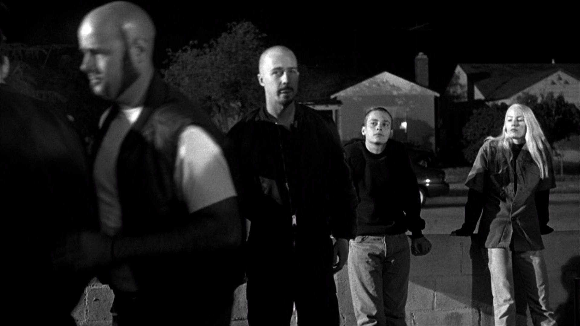 德瑞克(爱德华•诺顿 Edward Norton 饰)的父亲在他很小的时候就被一名黑人毒贩射杀,从此给他幼小的心灵埋下了仇恨的种子。原来德瑞克功课很好,是老师眼中的好学生。但自从父亲遇难后,他就将一切心机都放在了对付有色人种上面。他积极组织起一帮白人青年混混,到处和有色人种对着干。一次,他射杀了两名黑人,因此入狱。