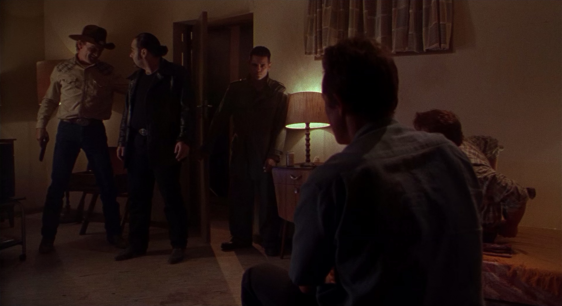 恶名昭彰的大盗路瑟逃狱成功,号召昔日狐群狗党巴克一票合组五人帮,准备重出江湖洗劫墨西哥银行。他们相约德州边境的野狼汽车旅馆,巴克一伙早早抵达,闲闲没事打炮看A片;路瑟命运乖违,在赶往旅馆会合途中,半路撞上吸血蝙蝠,又遭「大奶酒吧」吸血鬼一口咬定,变身吸血一族。 于是,五人相见欢,「口口相传」,只差巴克没被染指。吸血鬼抢银行超狠、超凶、超猛,警察的子弹完全没路用,血光四溅、吸血鬼个个原形毕露,巴克这才发现苗头不对,赶紧联手警察头头,展开人鬼大战……