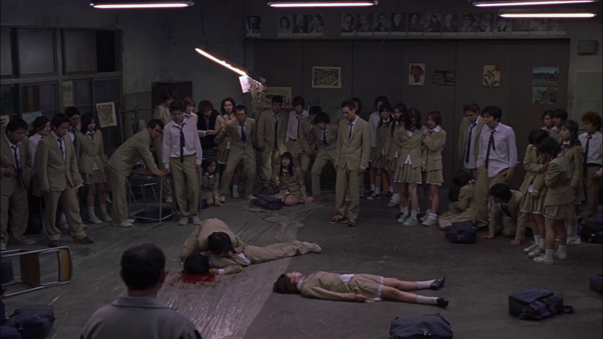 为了培养出忠实效忠于成人、在逆境中坚忍不拔的青少年一代,日本政府出台《BR》法案。每年都从全国学校随机抽出一个班级的同学,前往荒岛进行生存极限挑战——老师发给学生地图、粮食和各式武器,令他们自相残杀,直到存活下来的最后一个,才能离开荒岛。接下来,残酷的游戏规则和令人绝望的生存条件,使班级里的年轻人开始了相互杀戮。善良或者凶残,主动出击或者被动防守, 同学们开始了各自的计划,人性的丑恶在血腥的死亡中暴露无遗。