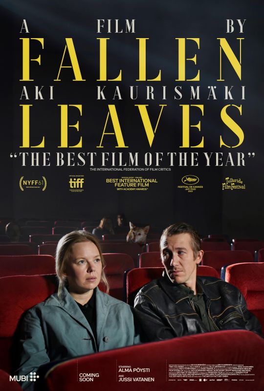 ◎标 题 枯叶 ◎译 名 Fallen Leaves / Dead Leaves / 落叶(港) ◎片 名 Kuolleet lehdet ◎年 代 2023 ◎产 地 芬兰 ◎类 别 剧情 / 喜剧 ◎语 言 芬兰语 ◎上映日期 2023-05-22(戛纳电影节) / 2023-09-15(芬兰) ◎IMDb链接 https://www.imdb.com/title/tt21027780/ ◎豆瓣评分 7.9/10 (27997人评价) ◎豆瓣链接 https://movie.douban.com/subject/35928797/ ◎导 演 阿基·考里斯马基 Aki Kaurismäki ◎编 剧 阿基·考里斯马基 Aki Kaurismäki ◎演 员 阿尔玛·波斯蒂 Alma Pöysti 尤西·瓦塔宁 Jussi Vatanen 詹恩·海蒂恩 Janne Hyytiäinen 努普·科伊武 Nuppu Koivu 阿里娜·汤姆尼科夫 Alina Tomnikov 马蒂·索萨洛 Martti Suosalo 萨卡里·库斯曼嫩 Sakari Kuosmanen 什万·哈吉 Sherwan Haji 保拉·奥伊诺宁 Paula Oinonen 玛莉亚·海思坎恩 Maria Heiskanen 埃罗·里塔拉 Eero Ritala 西蒙·阿尔·巴祖 Simon Al-Bazoon 米科·米卡宁 Mikko Mykkänen 安娜·卡贾莱宁 Anna Karjalainen 马蒂·奥尼斯马 Matti Onnismaa 米卡·尼坎德 Mika Nikander 劳里·温塔莫 Lauri Untamo 凯萨·卡贾莱宁 Kaisa Karjalainen 米沙·贾里 Misha Jaari 阿尔玛 Alma 奥利·瓦尔贾 Olli Varja 雅斯卡·瓦雷 Jaska Väre ◎简 介 故事讲述两个孤独的人在赫尔辛基的夜晚偶然相遇,并试图找到彼此生命中的第一个,唯一且最终的爱。他们通往这个目标的道路被男人的酗酒、丢失的电话号码、不知道彼此名字或地址,以及生活总倾向于在那些寻求幸福的人的道路上设置障碍所笼罩。