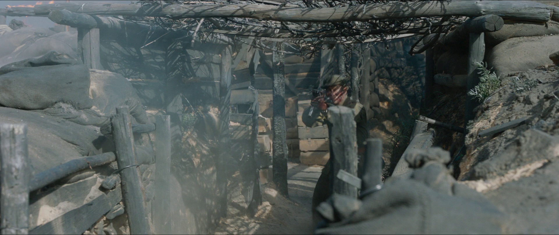炮火连天中,李默尹(辛柏青 饰)一家三口在战场上团聚,一把钥匙,一顿战壕中的团圆饭,让这个因战争分离的小家更为亲密。