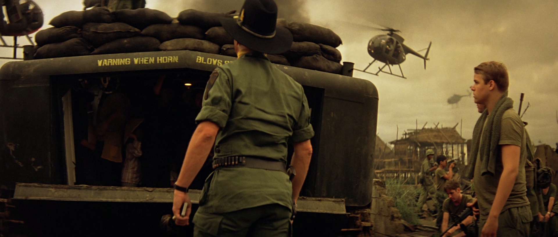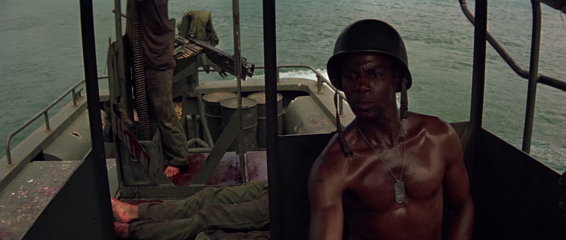 威拉德与几名士兵一路沿河而上,途中他们目睹了种种暴行、杀戮,目睹了无论美军士兵还是当地人在长期的战争中精神扭曲,做出的种种非正常的行为,威拉德感到了极大的震撼。
