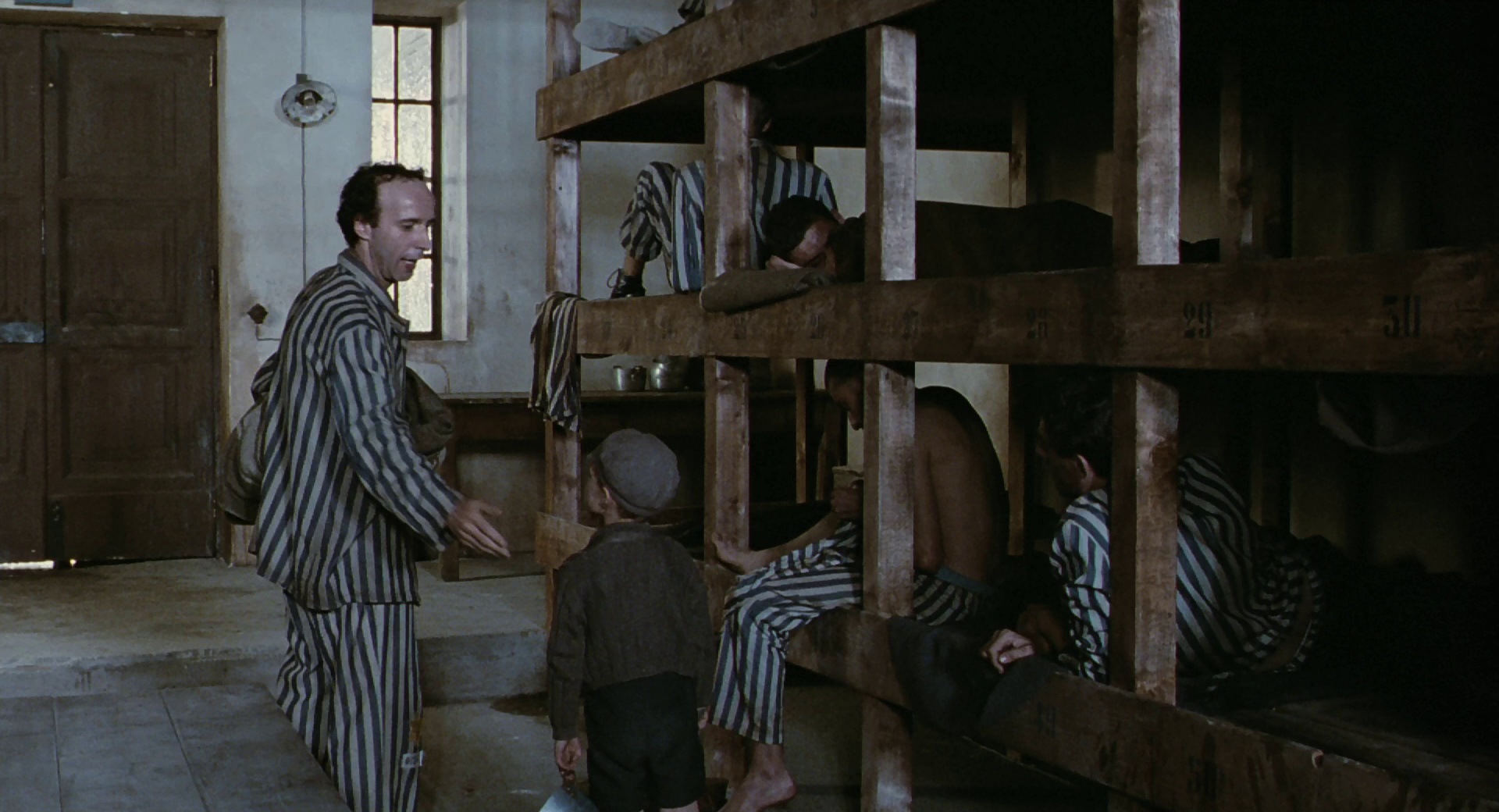 然而好景不长,法西斯政权下,圭多和儿子被强行送往犹太人集中营。多拉虽没有犹太血统,毅然同行,与丈夫儿子分开关押在一个集中营里。聪明乐天的圭多哄骗儿子这只是一场游戏,奖品就是一辆大坦克,儿子快乐、天真的生活在纳粹的阴霾之中。尽管集中营的生活艰苦寂寞,圭多仍然带给他人很多快乐,他还趁机在纳粹的广播里问候妻子:“早安!公主!”